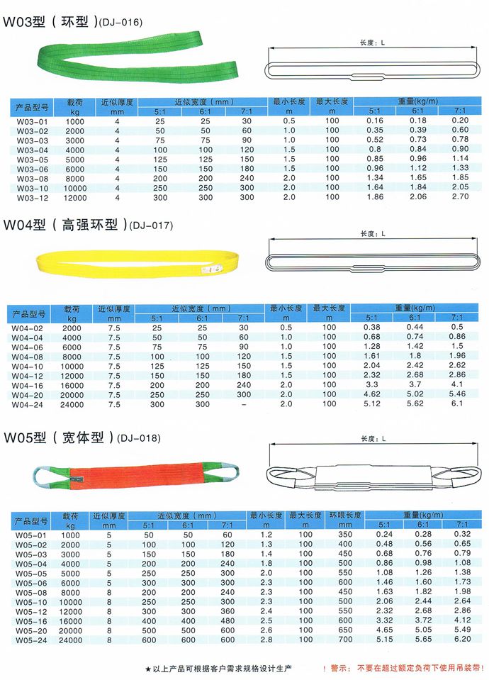扁平吊裝帶單根起吊力為40t,安全系數(shù)4-8倍。輕便又柔軟,易于簡(jiǎn)便、安全的操作。尼龍扁平化纖吊裝帶的安全負(fù)荷下延伸率小于8%,聚酯小于3%。